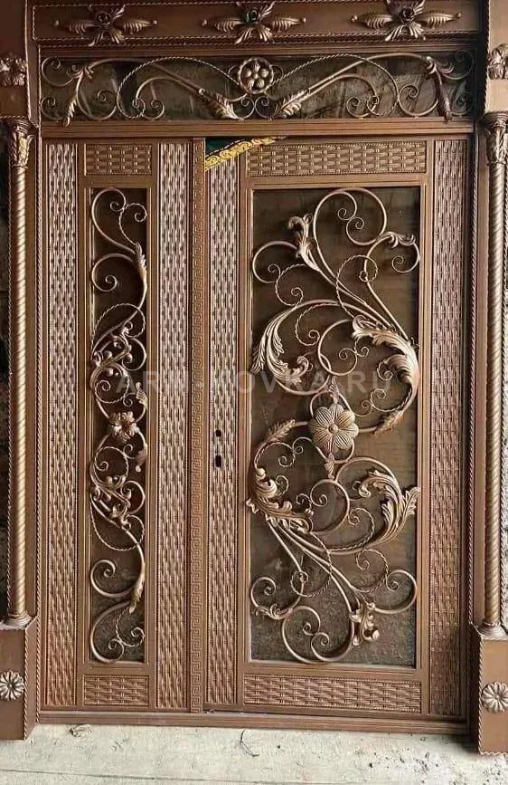 Шедевр декоративного искусства, эта полуторная дверь предназначена для создания торжественного и неповторимого образа главного входа. Модель сочетает в себе монументальность стальной конструкции и тонкую ручную работу мастеров художественной ковки. Благодаря увеличенной ширине за счет дополнительной створки, дверь идеально подходит для просторных загородных резиденций в Истринском районе, обеспечивая удобство эксплуатации и великолепный панорамный вид фасада. Главной эстетической ценностью двери является сложнейший растительный орнамент, выполненный в технике объемной ковки. Центральные и боковые элементы украшены изящными цветочными розетками, переплетающимися с акантовыми листьями и тонкими волютами. Поверхность основного полотна и наличников имеет уникальную фактурную чеканку, имитирующую плетение, что придает изделию дополнительный визуальный объем и глубину. Венчает входную группу декоративная фрамуга, украшенная симметричным кованым узором с центральным цветком. Все металлические поверхности защищены премиальным составом цвета «античная бронза» с многослойным патинированием, которое подчеркивает каждую деталь ручной работы. Дверь оснащена усиленным тепло- и звукоизоляционным слоем, взломостойкими замками и массивными наличниками-колоннами. «Флоренция» — это не просто дверь, а символ гостеприимства и высокого статуса владельца дома.