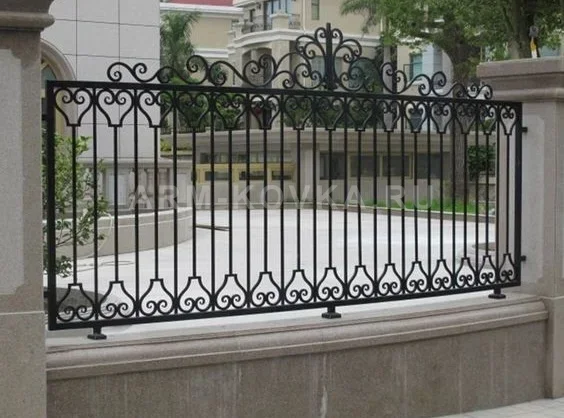 Элегантное и строгое ограждение, выполненное в стиле европейского классицизма. Модель «Люксембург» отличается идеальной симметрией и графичностью линий, что делает её превосходным выбором для оформления городских резиденций и частных владений в Истринском районе. Благодаря высокому уровню прозрачности, забор не перегружает ландшафт, акцентируя внимание на архитектуре основного здания. Дизайн секции построен на ритмичном повторении вертикальных стоек, которые сверху и снизу обрамлены декоративными поясами в форме стилизованных сердец или лилий. Зеркальное расположение этих элементов создает гармоничный визуальный баланс. Главным украшением секции является центральное навершие — изящная композиция из крупных S-образных волют, которая возвышается над основной линией забора, придавая всей конструкции парадный и завершенный вид. Ограждение изготовлено из прочного стального профиля и монтируется на невысокий каменный или бетонный парапет. Черное матовое покрытие обеспечивает надежную защиту от коррозии и подчеркивает графичность кованого рисунка. По желанию заказчика возможна финишная отделка патиной для выделения декоративных завитков. Забор «Люксембург» — это сочетание сдержанного благородства и безупречной надежности.
