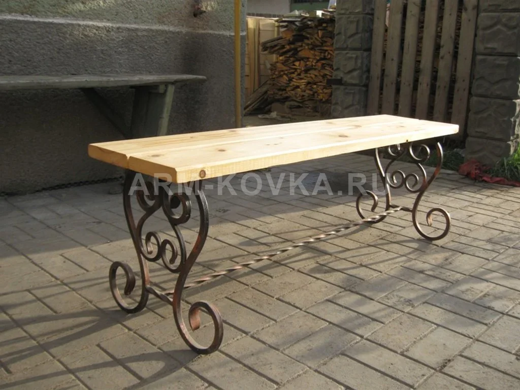 Практичная и лаконичная скамья-банкетка без спинки, созданная для функционального дополнения садовых дорожек, зон у костра или входных групп загородного дома. Модель отличается строгим, но изящным дизайном, который легко интегрируется в любой ландшафтный стиль — от классического до лофта. Изделие является результатом качественной кузнечной работы, где основное внимание уделено устойчивости и надежности конструкции. Основание скамьи выполнено из прочного металлического профиля с художественной ковкой в виде симметричных S-образных завитков. Боковые опоры соединены между собой витой стальной перемычкой (торсионом), которая не только выступает декоративным элементом, но и значительно увеличивает жесткость каркаса, предотвращая расшатывание. Сиденье изготовлено из массивной доски хвойных пород с выразительной природной фактурой. Дерево тщательно отшлифовано и защищено бесцветным или светлым составом, сохраняющим естественный оттенок древесины. Металлические части покрыты износостойкой краской с эффектом легкого патинирования, что защищает их от коррозии при эксплуатации на открытом воздухе. Эта компактная и надежная скамья станет отличным выбором для благоустройства участков в Истринском районе.