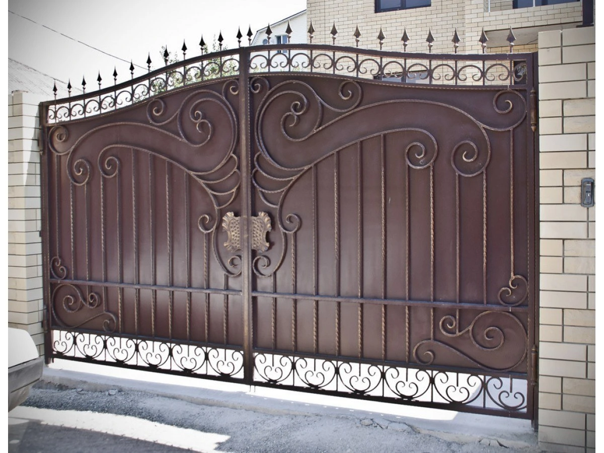 Распашные или откатные кованые ворота с художественными элементами. Стоимость указана за ворота стандартного размера (3×2 м) с учётом материала, изготовления, покраски и патинирования. Более 10 вариантов цветов. Установка под ключ в Истре и Истринском районе. Возможна зашивка листом, поликарбонатом или профлистом.
