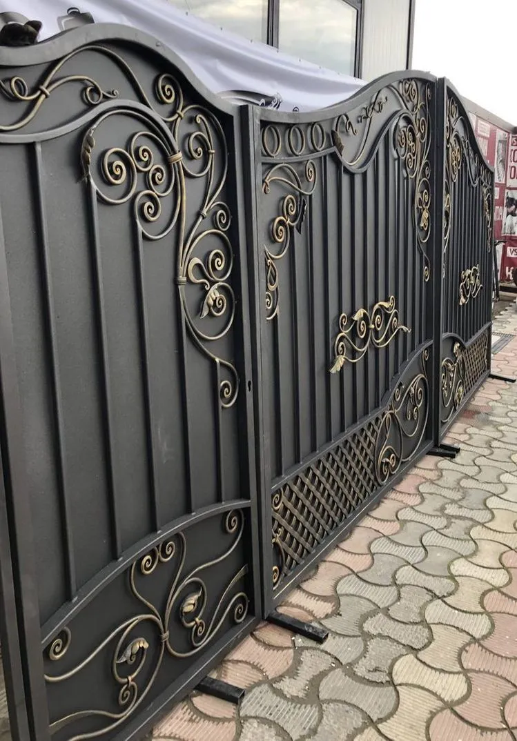 Распашные или откатные кованые ворота с художественными элементами. Стоимость указана за ворота стандартного размера (3×2 м) с учётом материала, изготовления, покраски и патинирования. Более 10 вариантов цветов. Установка под ключ в Истре и Истринском районе. Возможна зашивка листом, поликарбонатом или профлистом.