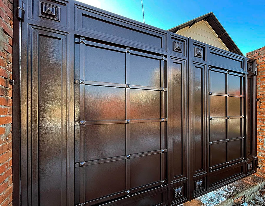 Кованые ворота с оригинальным рисунком и акцентными коваными деталями. Прочная конструкция, антикоррозийная обработка. Тип открывания — распашные или откатные. Возможна зашивка профлистом. Замер и установка в Истре бесплатно.
